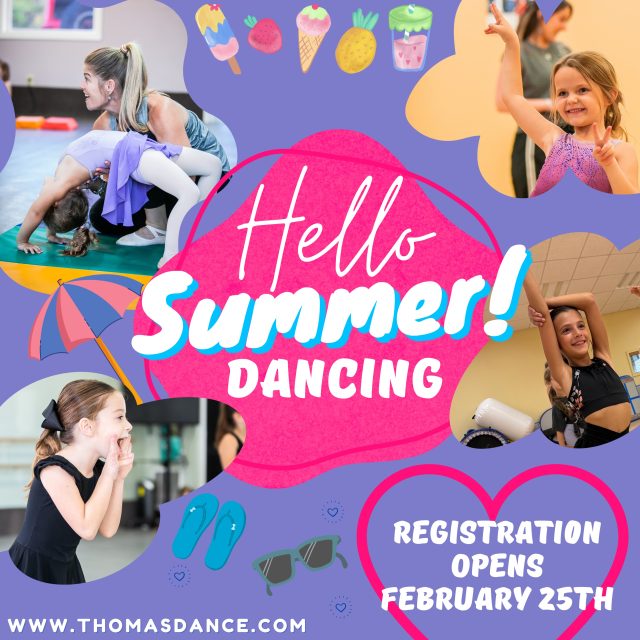 We’re thinking about summer this week! While this winter seems to be barreling on, let’s focus on some warm weather times. Do you have plans for your dancer yet? We are looking forward to our plethora of dance camps and clinics that will be offered during our summer months. Summer is a wonderful time to continue training for your dancer as well as the perfect opportunity to try a new genre of dance.